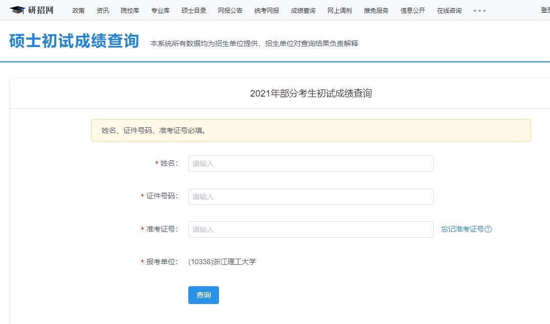 2021考研初試成績:浙江理工大學考研初試成績查詢入口開啟!初試成績已公布!