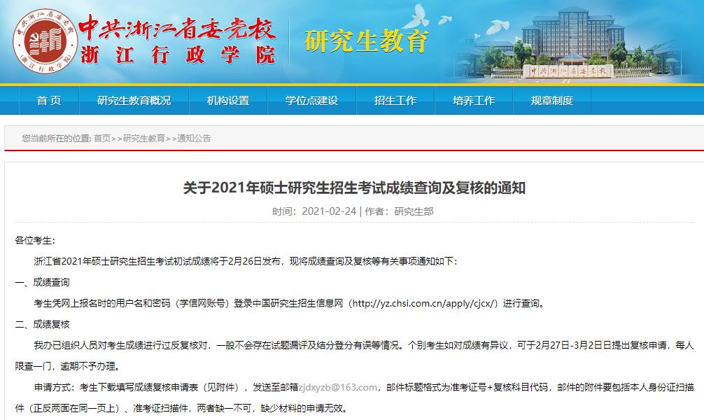 以上就是小編整理“2021考研初試成績:中共浙江省委黨校考研初試成績查詢入口開啟!初試成績已公布!”的全部內容,想了解更多相關信息請持續關注本網站。