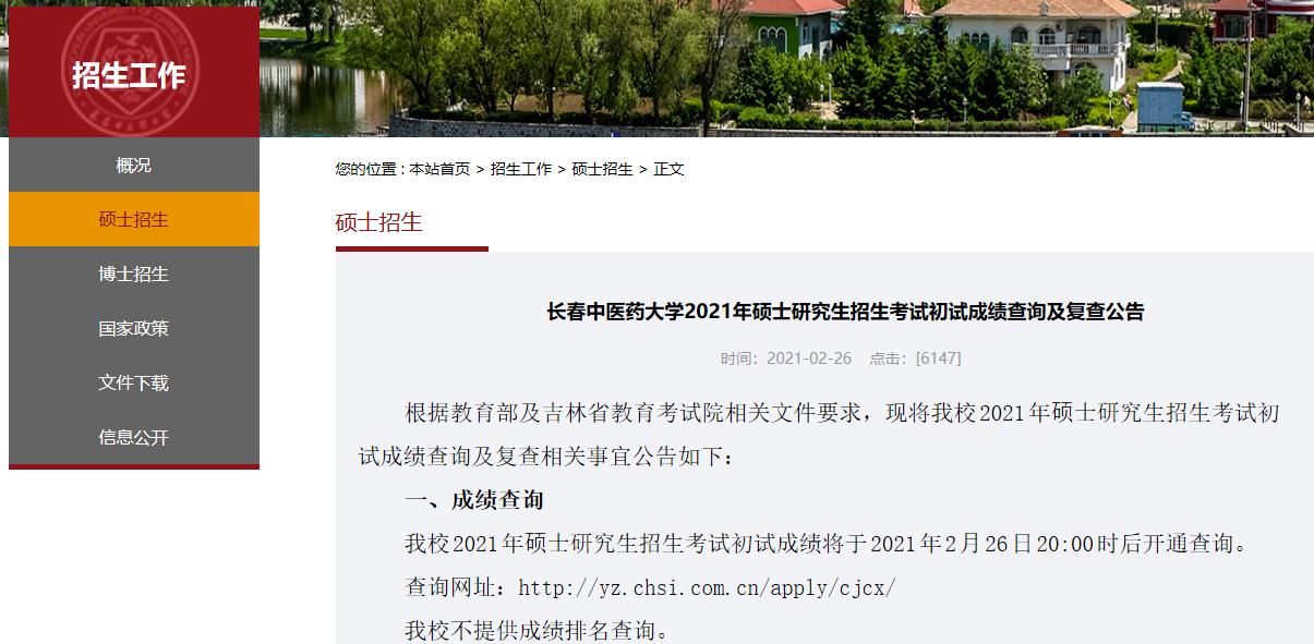 以上就是小編整理“2021考研初試成績:長春中醫藥大學考研初試成績查詢入口開啟!初試成績已公布!”的全部內容,想了解更多相關信息請持續關注本網站。