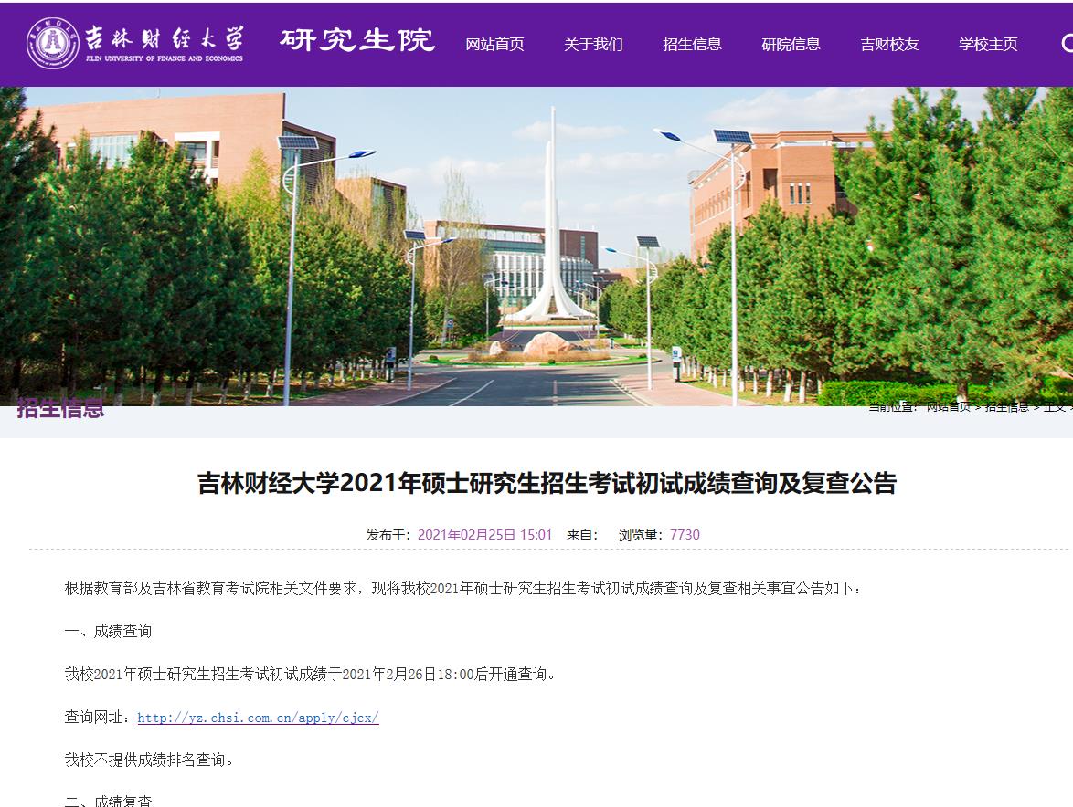 以上就是小編整理“2021考研初試成績:吉林財經大學考研初試成績查詢入口開啟!初試成績已公布!”的全部內容,想了解更多相關信息請持續關注本網站。