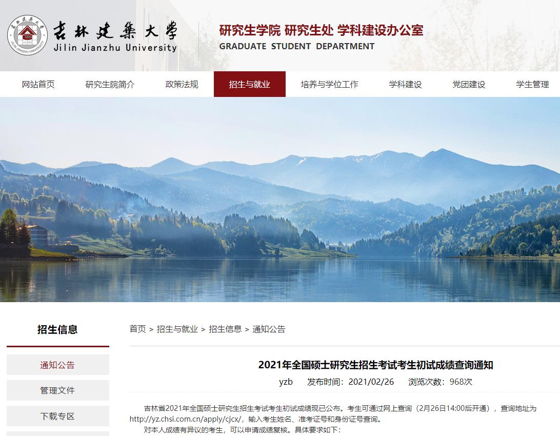 2021考研初試成績(jī):吉林建筑大學(xué)考研初試成績(jī)查詢?nèi)肟陂_(kāi)啟!初試成績(jī)已公布!