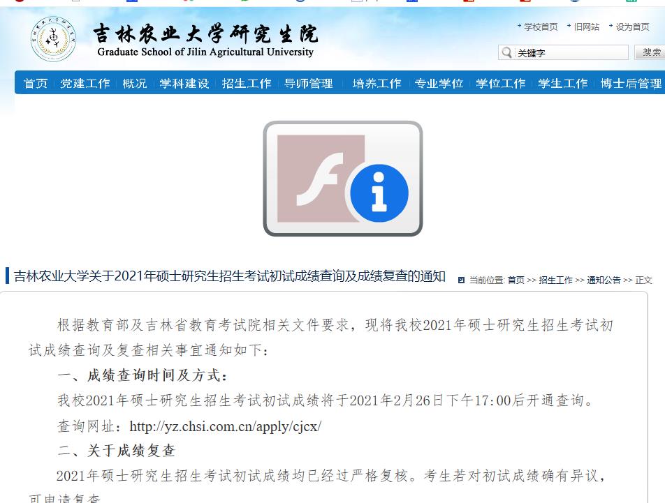 2021考研初試成績:吉林農業大學考研初試成績查詢入口開啟!初試成績已公布!