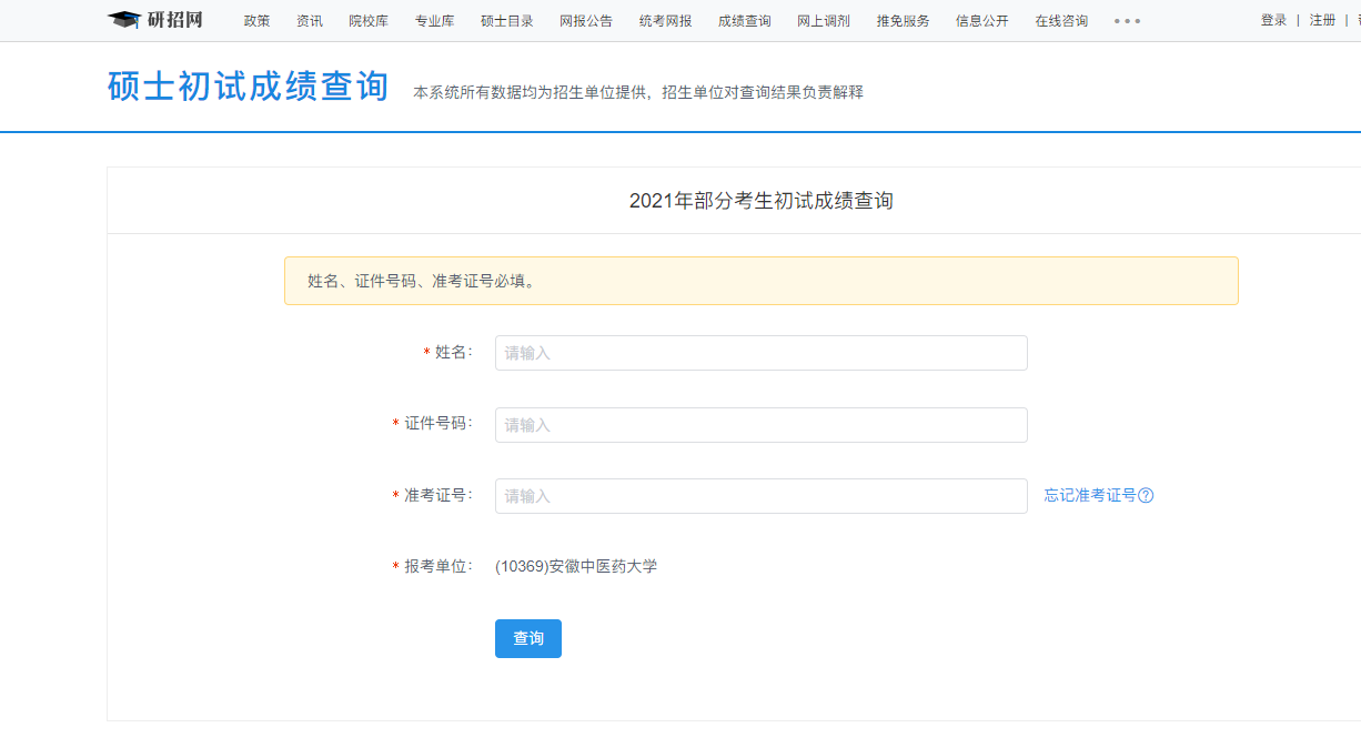安徽中醫藥大學考研初試成績查詢入口:https://yz.chsi.com.cn/apply/cjcx/t/10369.dhtml