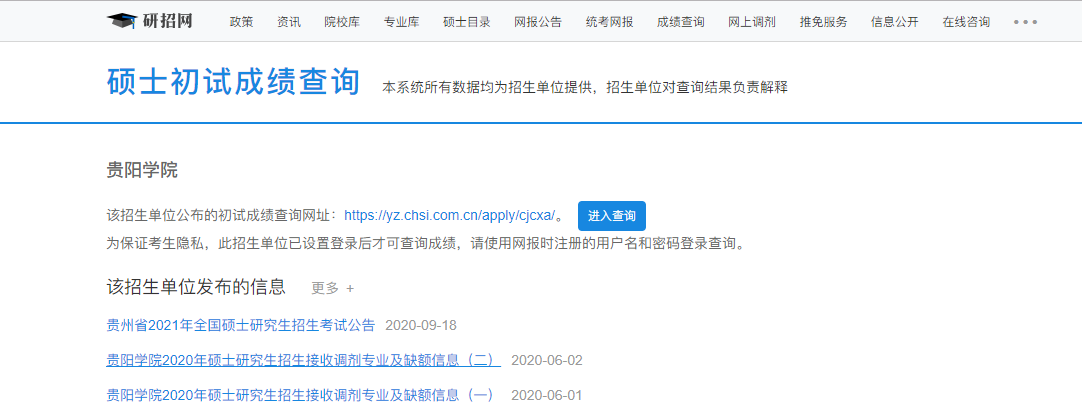 以上就是小編整理“2021考研初試成績:貴陽學院考研初試成績查詢入口開啟!初試成績已公布!”的全部內容,想了解更多相關信息請持續關注本網站。