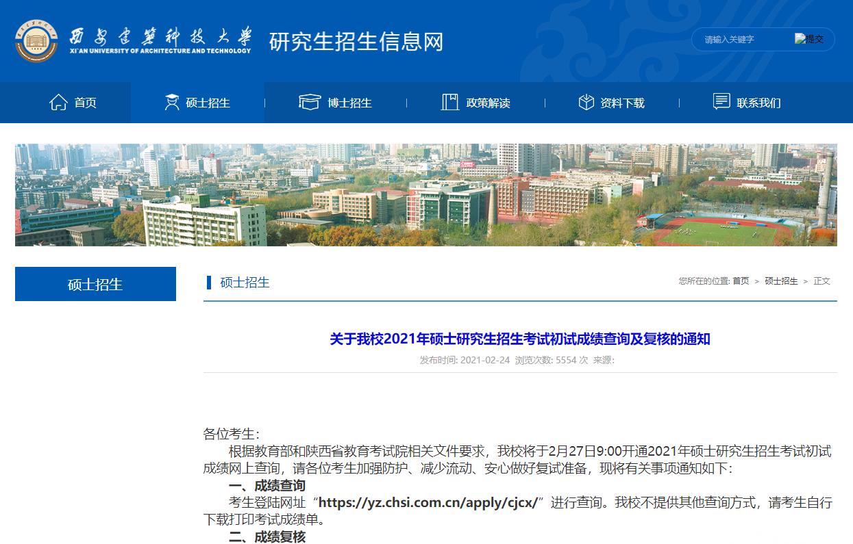 以上就是小編整理“2021考研初試成績:西安建筑科技大學考研初試成績查詢入口開啟!初試成績已公布!”的全部內容,想了解更多相關信息請持續關注本網站。
