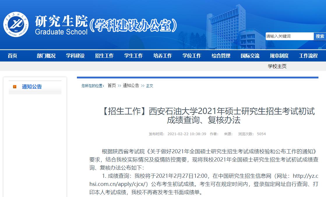 以上就是小編整理“2021考研初試成績:西安石油大學(xué)考研初試成績查詢?nèi)肟陂_啟!初試成績已公布!”的全部內(nèi)容,想了解更多相關(guān)信息請持續(xù)關(guān)注本網(wǎng)站。