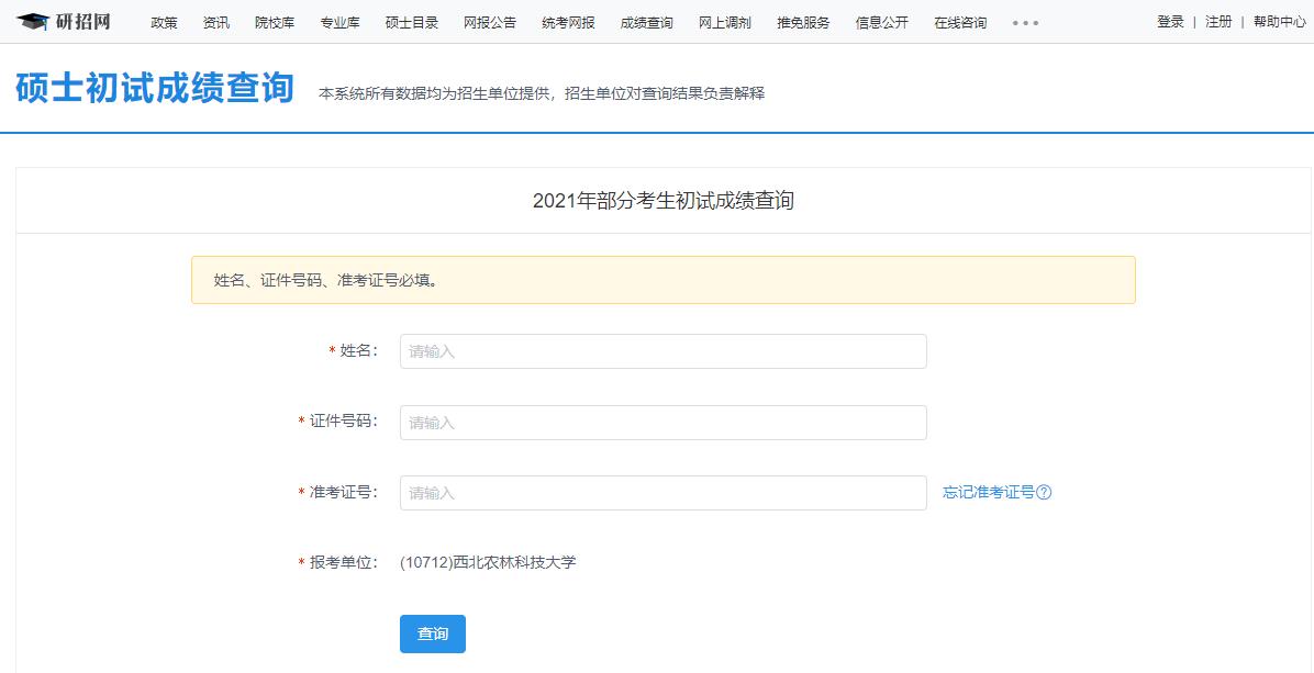 以上就是小編整理“2021考研初試成績:西北農(nóng)林科技大學考研初試成績查詢?nèi)肟陂_啟!初試成績已公布!”的全部內(nèi)容,想了解更多相關信息請持續(xù)關注本網(wǎng)站。
