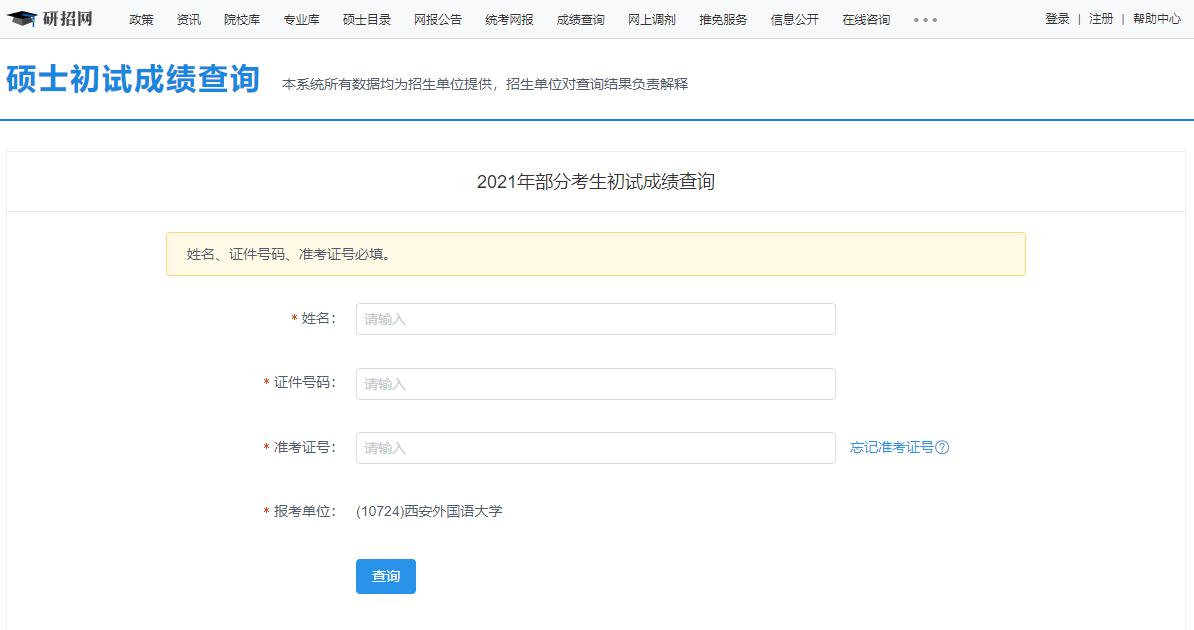 西安外國語大學考研初試成績查詢入口:https://yz.chsi.com.cn/apply/cjcx/t/10724.dhtml