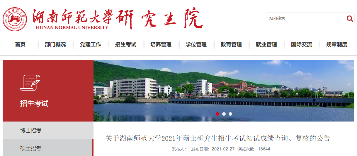 2021考研初試成績:湖南師范大學考研初試成績查詢入口開啟!初試成績已公布!