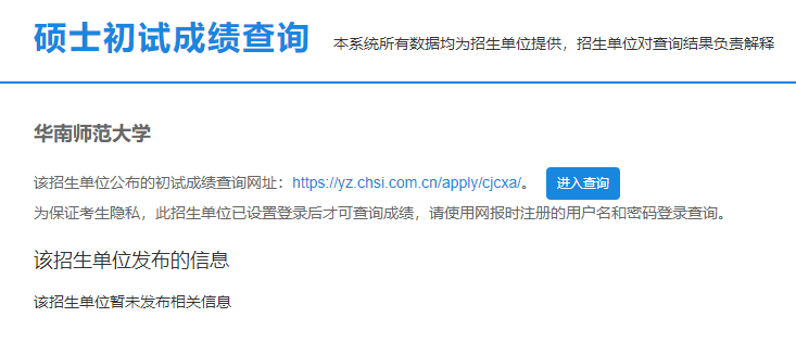 華南師范大學考研初試成績查詢入口https://yz.chsi.com.cn/apply/cjcxa/