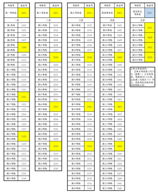 我校考場全部設在【二號教學樓】內,考場安排如下: