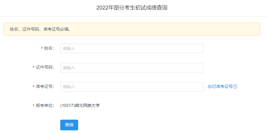 湖北民族大學2022研究生成績查詢入口:https://yz.chsi.com.cn/apply/cjcx/t/10517.dhtml