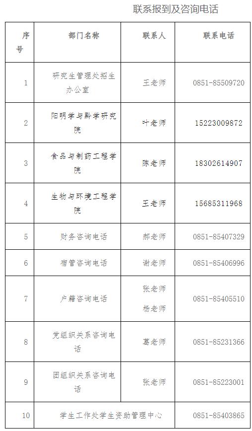 2.新生入學(xué)報(bào)到時(shí),請(qǐng)注意安全,防止貴重財(cái)物和證件遺失,高度警惕被盜、被騙。非正常報(bào)到時(shí)間到校的同學(xué)請(qǐng)與宿管科聯(lián)系安排住宿,聯(lián)系人:謝老師,聯(lián)系電話:0851-85406996。