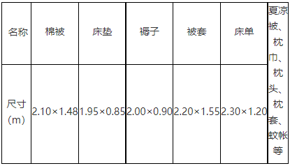 宿舍床體尺寸為2.0×0.9m(內徑0.85m)。新生臥具可自備,報到當天各校區指定地點也均有學校遴選的臥具廠家現場銷售。為防止“黑心棉”和流行性疾病流入校園,請自帶合格產品或在校內指定銷售點購買。