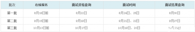 每批次預面試結束后的7個工作日左右在報考服務系統中公布該批次考生預面試結果。2020年MBA預面試(2019年進行)的面試結果分為“通過”和“不通過”兩檔。6.預面試日程安排(如面試時間與學校重大活動時間沖突,以后續通知為準)