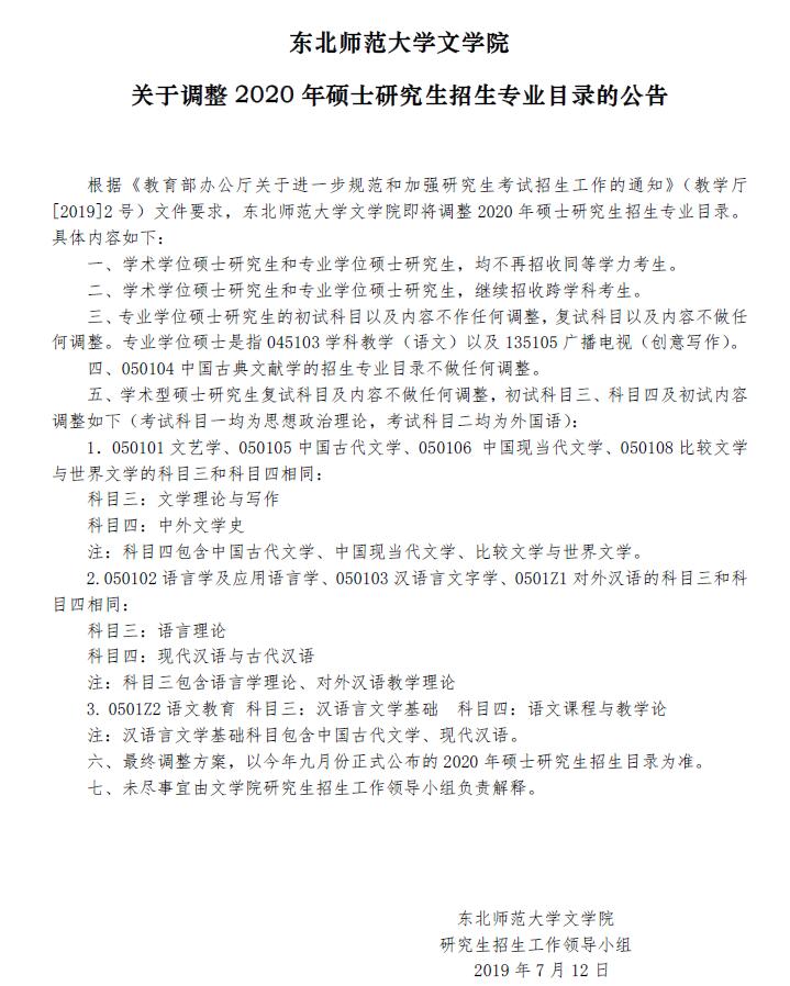 以上就是“東北師范大學文學院關于編制2020年碩士研究生招生專業目錄的具體方案”的全部內容!更多院校2020考研最新通知公告,盡在研線網“院校公告”欄目!