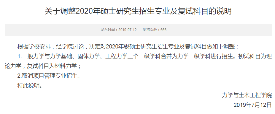 以上就是“中國礦業大學力學與土木工程學院關于調整2020年碩士研究生招生專業及復試科目的說明”的全部內容!更多院校考試科目更改內容,點擊進入“院校公告”欄目查看!