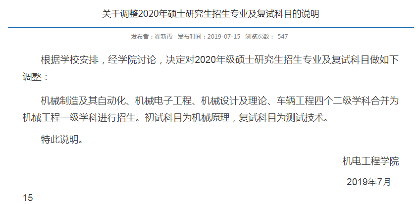 以上就是“中國礦業大學機電工程學院關于調整2020年碩士研究生招生專業及復試科目的說明”的全部內容!更多院??荚嚳颇扛膬热?,點擊進入“院校公告”欄目查看!