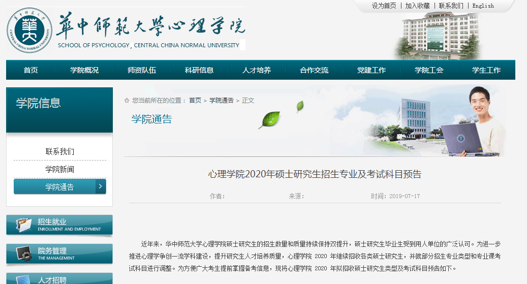 (注:心理學院2020年碩士研究生招生最終信息以華中師范大學發布的研究生招生簡章為準。)