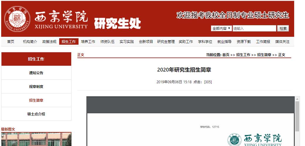 忙于備考的同時,也應該關注一下院校官方信息的發布,比如2020年研究生招生簡章。今天,小編整理了“西京學院2020年攻讀碩士學位研究生招生簡章”的相關內容!有相關報考意愿的同學注意一下!