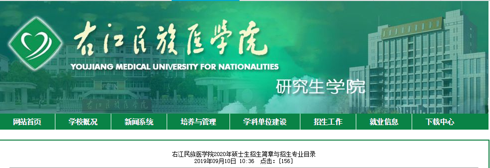 忙于備考的同時,也應該關注一下院校官方信息的發布,比如2020年研究生招生簡章。今天,小編整理了“右江民族醫學院2020年碩士生招生簡章與招生專業目錄”的相關內容!有相關報考意愿的同學注意一下!