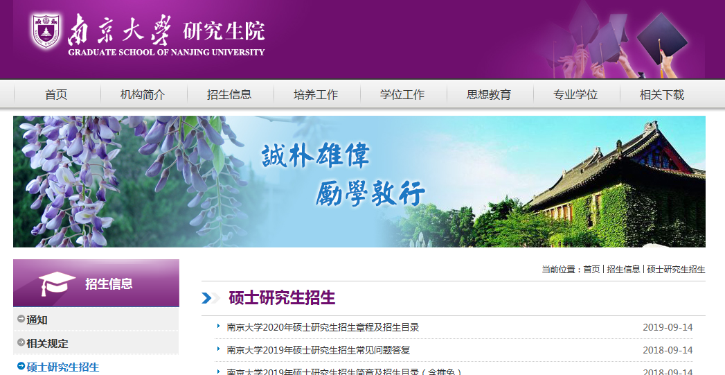 以上就是“南京大學2020年碩士研究生招生章程及招生目錄”的全部內(nèi)容!祝您考研成功!