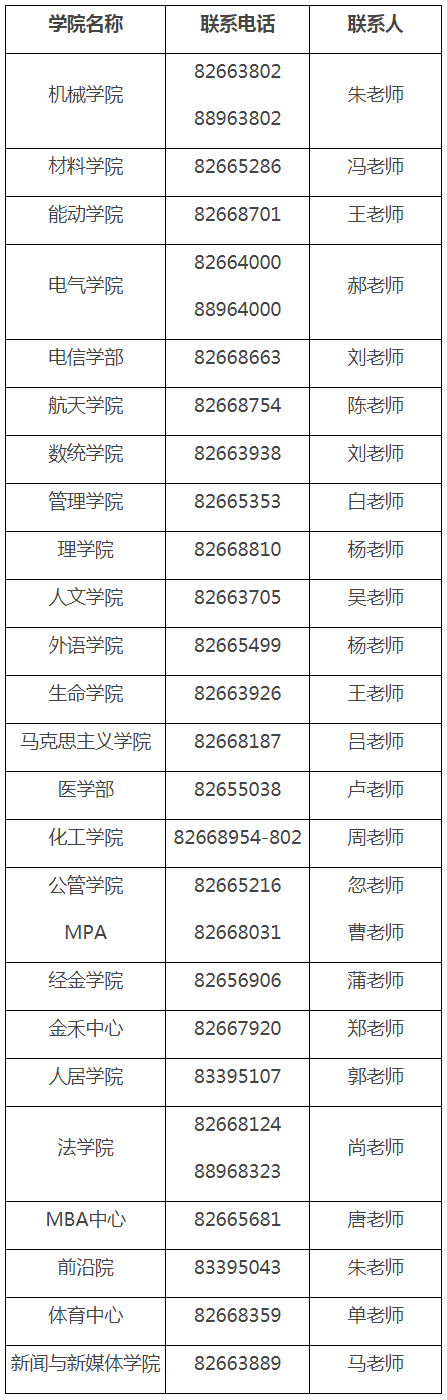 考生可根據報考專業通過招生目錄查詢該專業所屬學院,通過以下方式咨詢相關信息。