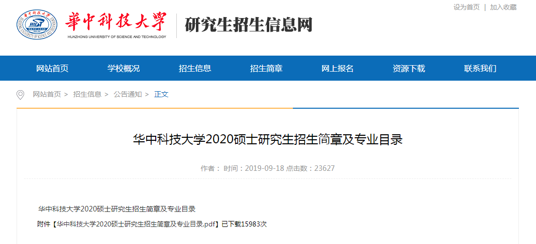 2020年碩士研究生招生簡章陸續(xù)已出,今天小編給大家整理的是“華中科技大學2020碩士研究生招生簡章及專業(yè)目錄”的相關內(nèi)容,有報考意愿的小伙伴要注意下哦!