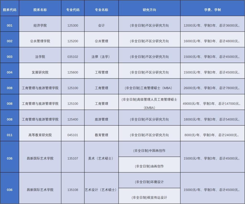 3.非全日制碩士研究生學費見下表,具體收費標準以省級價格主管部門核定和備案的為準: