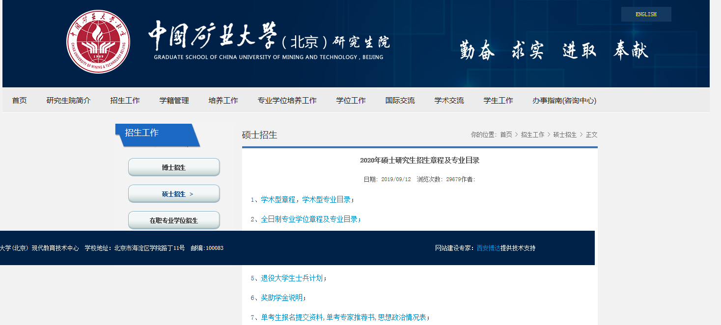 以上就是“中國礦業(yè)大學(xué)(北京)2020年碩士研究生招生章程及專業(yè)目錄”的全部內(nèi)容!祝您考研成功!