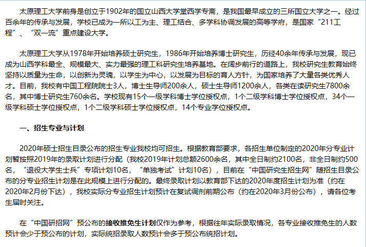 以上就是“太原理工大學2020年碩士研究生招生簡章的全部內容!祝您考研成功!