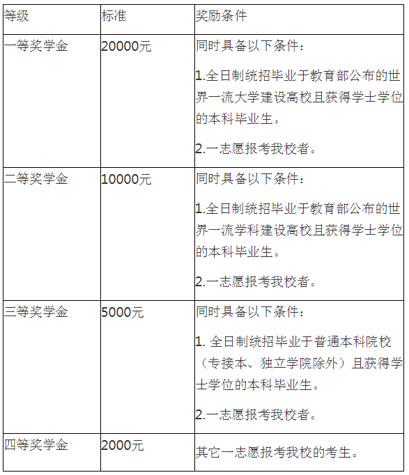 說明:1.滿足以上條件并被錄取者,報到入學后發放獎學金。