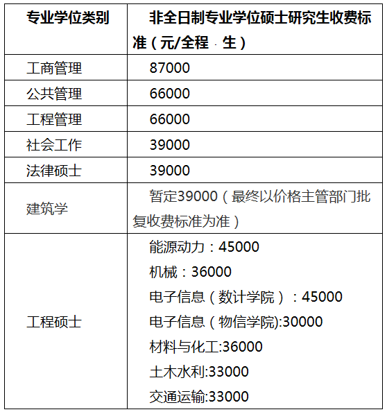 全日制學術型、專業學位碩士研究生,學費標準均定為8000元/生﹒學年;非全日制專業學位碩士研究生,根據專業學位類別和錄取類別的不同執行不同的學費標準,具體如下: