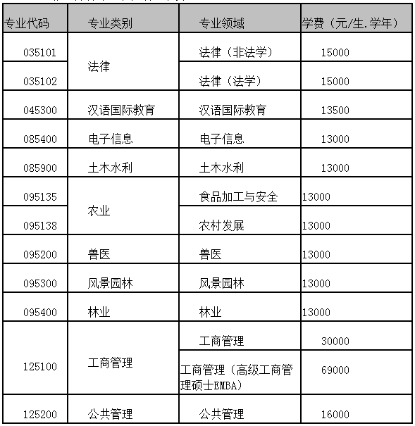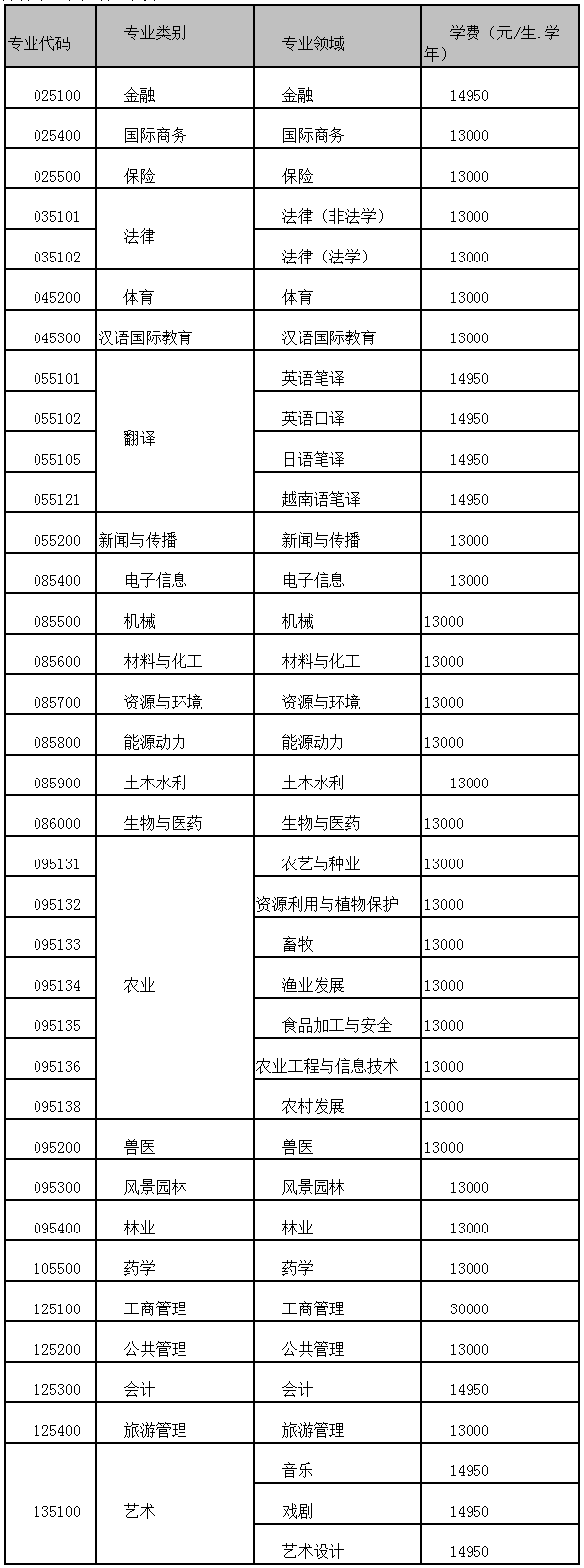 (二)全日制專業(yè)學(xué)位碩士學(xué)費