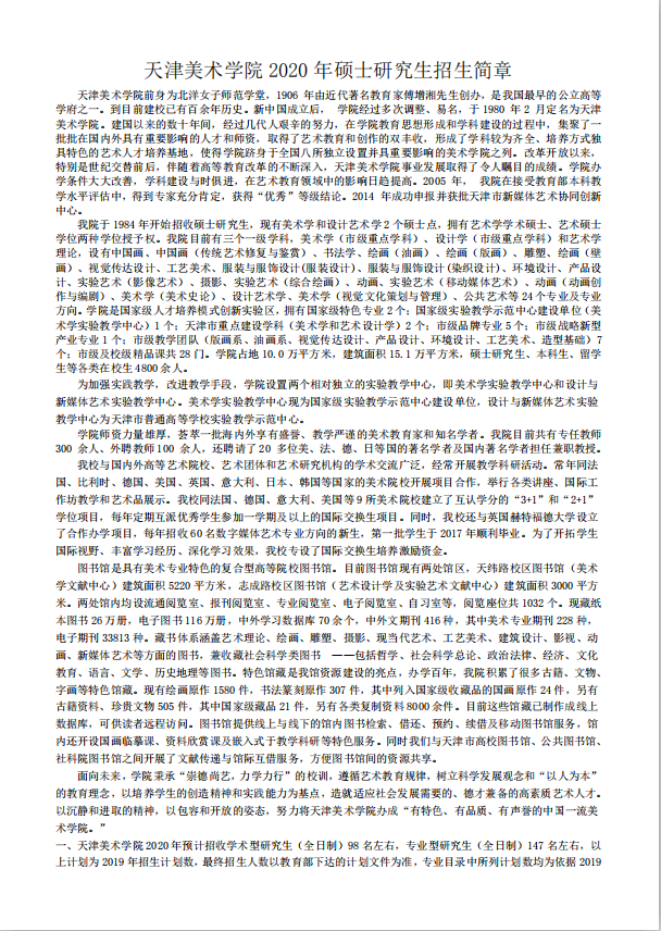 天津美術(shù)學(xué)院2020年碩士研究生招生簡章