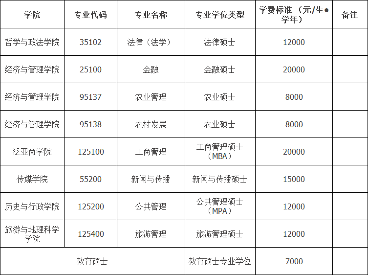 說明:全日制碩士專業代碼第3位是5的是專業學位 3.非全日制專業學位碩士研究生學費標準