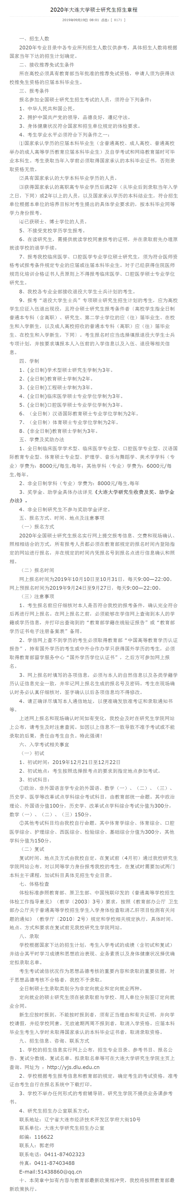 2020考研招生簡章|大連大學2020年碩士研究生招生章程