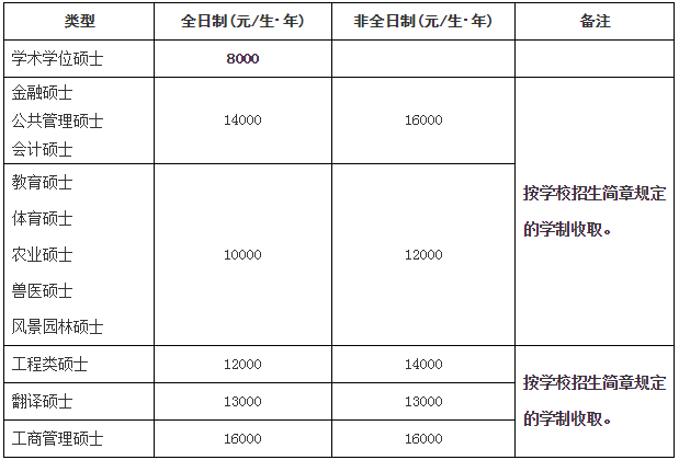 我校各類型研究生均需繳納學費,學費收取標準如下,如有變動,按省物價局最新文件執行: