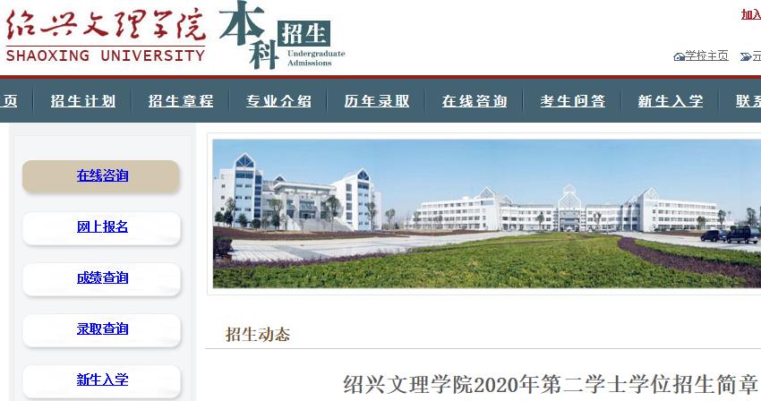 紹興文理學院是教育部批準的普通全日制綜合性高等學校。學校坐落于全國首批歷史文化名城紹興?,F有本科專業63個,涵蓋九大學科門類,擁有13個碩士學位點。為貫徹落實《教育部辦公廳關于在普通高校繼續開展第二學士學位教育的通知》(教高廳函〔2020〕9號)精神,進一步優化人才培養結構,結合學校辦學特色和教育教學資源,學校2020年面向社會招收全日制第二學士學位學生。