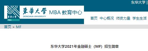 以上就是“2021考研招生簡章:東華大學旭日工商管理學院2021年金融碩士(MF) 招生簡章”的全部內容!更多信息盡在招生簡章欄目,祝考研成功!