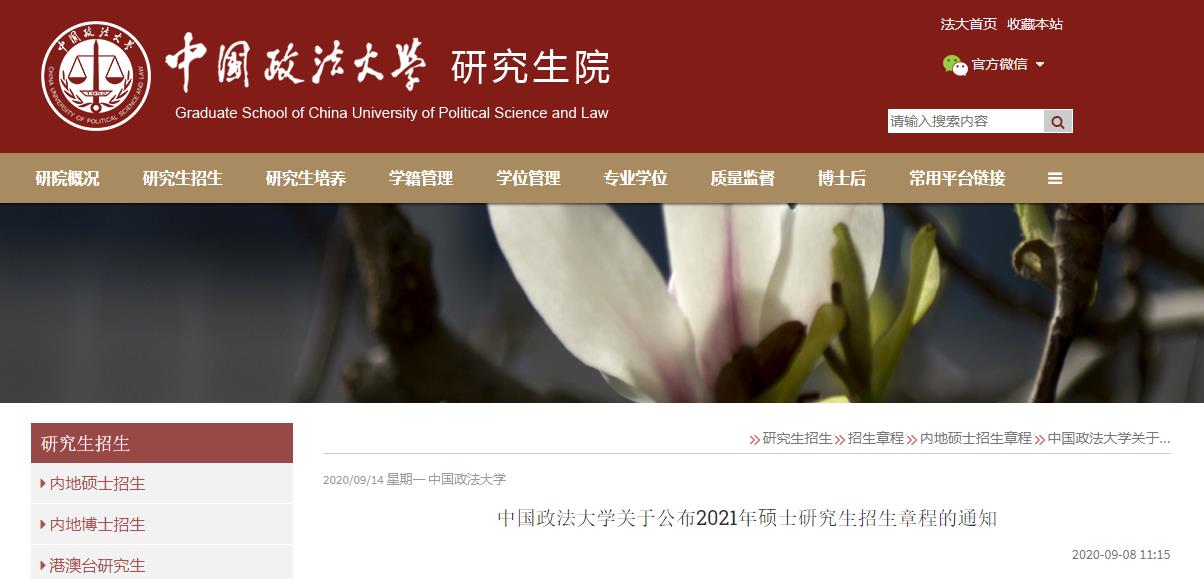 原文標題:中國政法大學關(guān)于公布2021年碩士研究生招生章程的通知