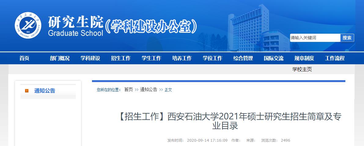 各位同學備考的同時,也要時刻關注院校官網的信息,小編將及時更新各院校2021年招生簡章,為考生提供第一手的招生信息,敬請關注。今天,小編整理了“2021考研招生簡章:西安石油大學2021年碩士研究生招生簡章 ”的相關內容!下面我們一起來看一看!