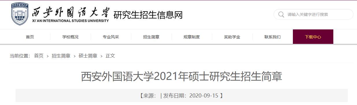 各位同學備考的同時,也要時刻關注院校官網的信息,小編將及時更新各院校2021年招生簡章,為考生提供第一手的招生信息,敬請關注。今天,小編整理了“2021考研招生簡章:西安外國語大學2021年碩士研究生招生簡章 ”的相關內容!下面我們一起來看一看!