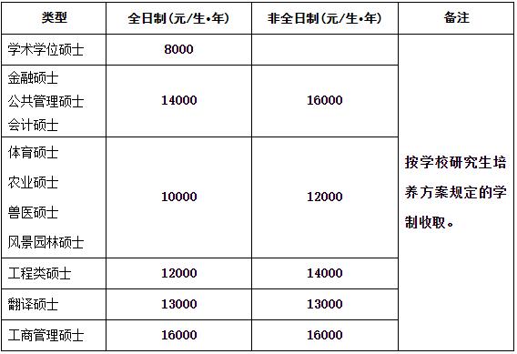 我校各類型研究生均需繳納學費,學費收取標準如下,如有變動,按省物價局最新文件執(zhí)行: