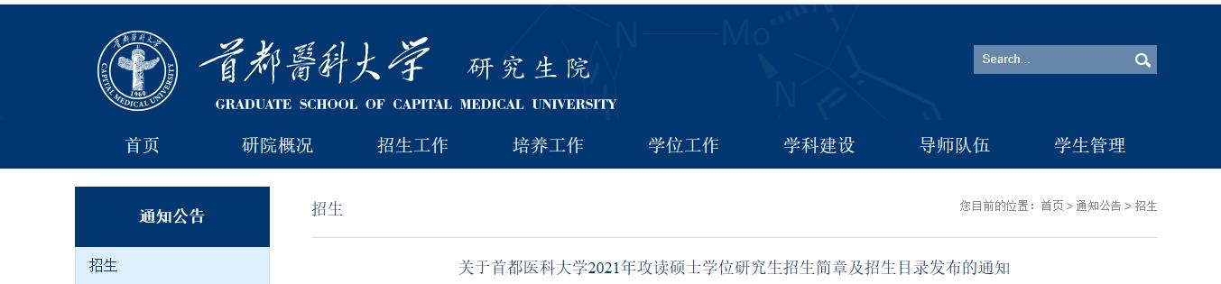原文標題:關于首都醫科大學2021年攻讀碩士學位研究生招生簡章及招生目錄發布的通知