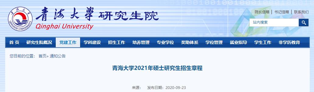 以上就是研線網小編整理“2021考研招生簡章:青海大學2021年碩士研究生招生章程 ”的全部內容,更多內容盡在招生簡章欄目,請持續關注!