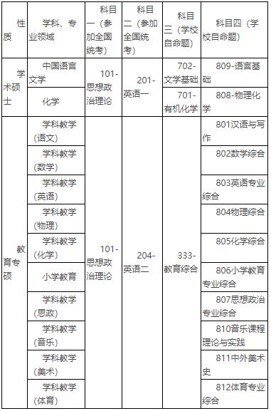 (一)學術學位碩士(全日制):中國語言文學、化學
