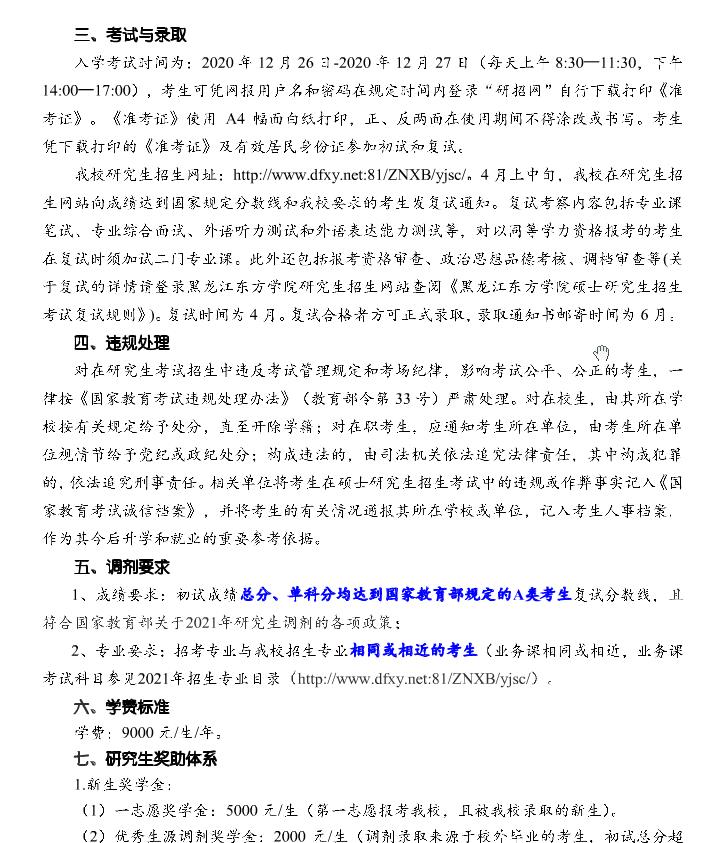 以上就是“2021考研招生簡章:黑龍江東方學院2021年全日制研究生招生簡章”的全部內容!祝您考研成功!