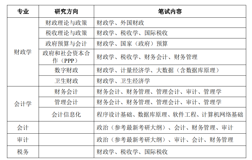 2.方式:筆試考試科目除全國(guó)統(tǒng)考和聯(lián)考科目外,其它科目由財(cái)科院命題,每科考試時(shí)間為3小時(shí),詳細(xì)考試科目及相關(guān)要求等請(qǐng)見(jiàn)《初試目錄》《準(zhǔn)考證》。
