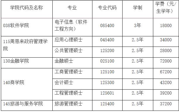 2021年非全日制專業學位碩士研究生招生專業包括:電子信息(軟件工程方向)、應用心理、公共管理、金融、工商管理、會計、工程管理、旅游管理。